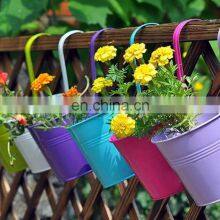 Colorful Metal Bucket Flower Hanging Pot Balcony Garden Pots Plant Flower Holders Balcony Iron Flower Pot