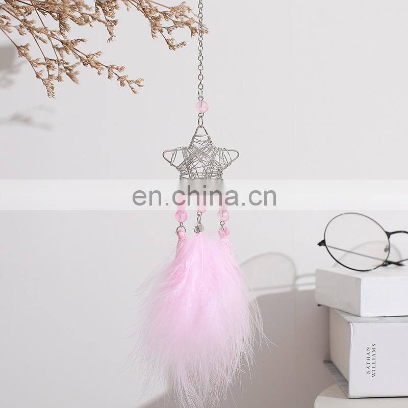 Wholsale Moon Star Colorful Feather Dreamcatcher Keychain Small Mini Dream Catcher For Car