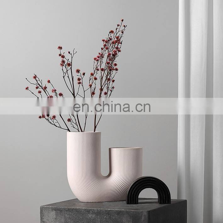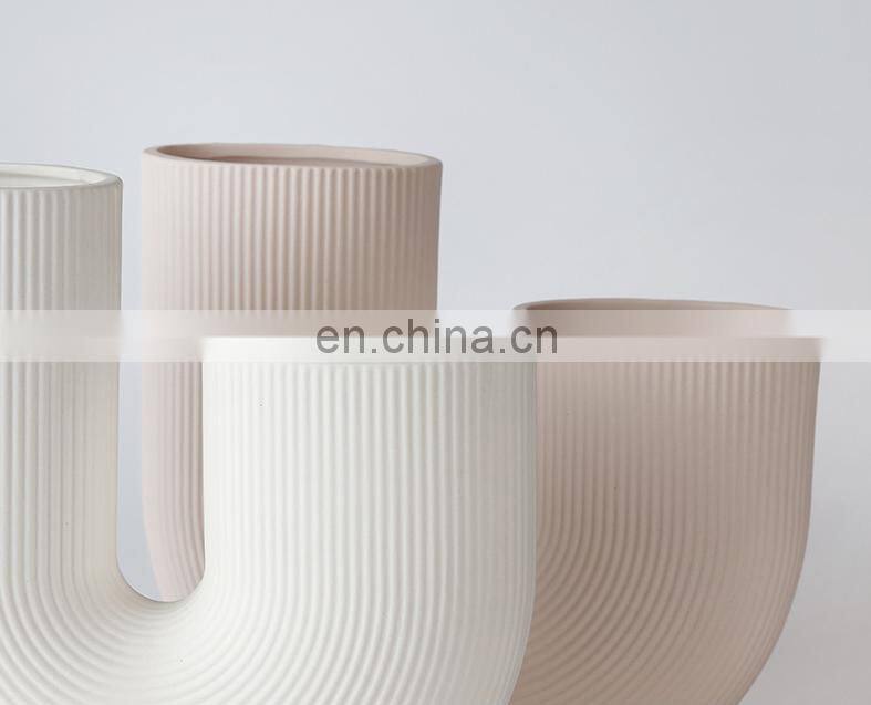 New Design Home Decor Arch Shape Cylindrical Tabletop Ornament U-shaped Ceramic Flower Vases With Curved Lines