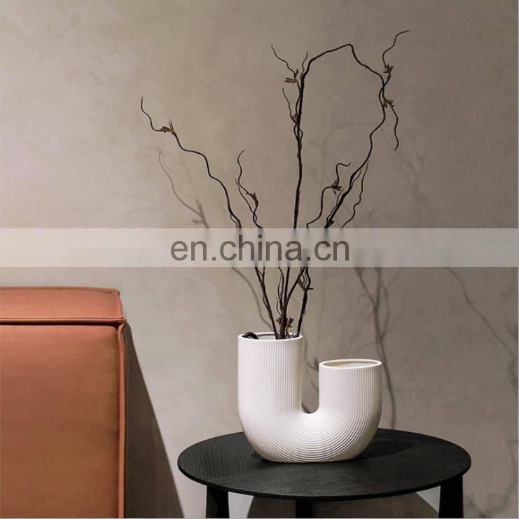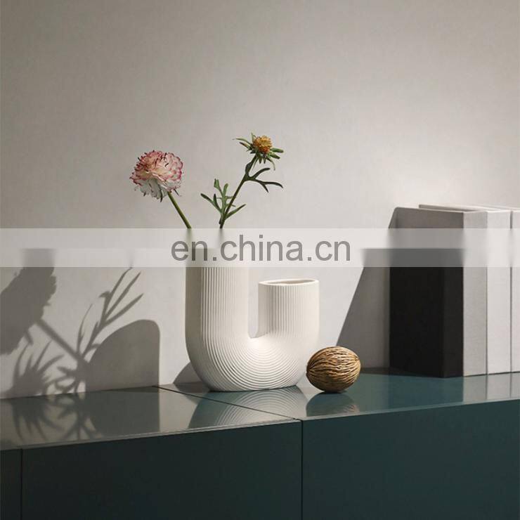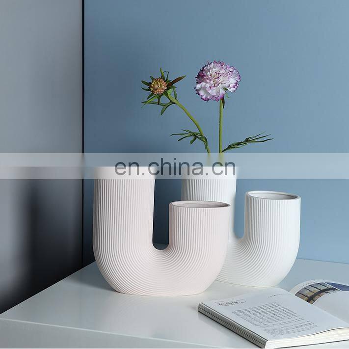 Amazon Hot Selling U- Shape White Creative Decorative Ceramic Crafts Vase Home Decor Office Desktop