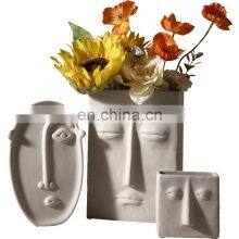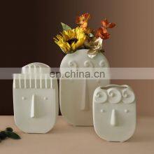 Nordic Creative Abstract Pure White Face Flower Pot White Chinese Ceramic Vase For Home Decor