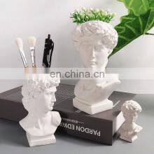 Factory Hot Sale European Home Decoration Art Sculpture Nordic Face Resin Vase Flower Makeup Brush Holder David Head
