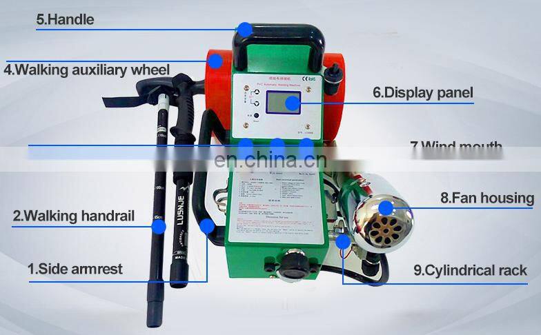 Waterproof welding machine, especially suitable for the on-site welding construction of PVC waterproof rolling material, can weld waterproof membrane, membrane structure material, canopy cover material, plastic coated canvas, tent, plastic coated woven cloth, PVC soft curtain welding.Has small volume, light weight, the characteristics of the welding operation is simple and economic, the advanced hot air welding technology, knob control set the hot blast temperature, welding speed, fan speed, digital display temperature, according to the thickness of membrane materials increase or decrease in counter weight adjusting welding pressure, so as to ensure uniform weld is firm and reliable, high strength, tear resistance, no leakage, welding quality is good,High efficiency, effectively avoid leakage phenomenon caused by leakage welding, false welding and burning.