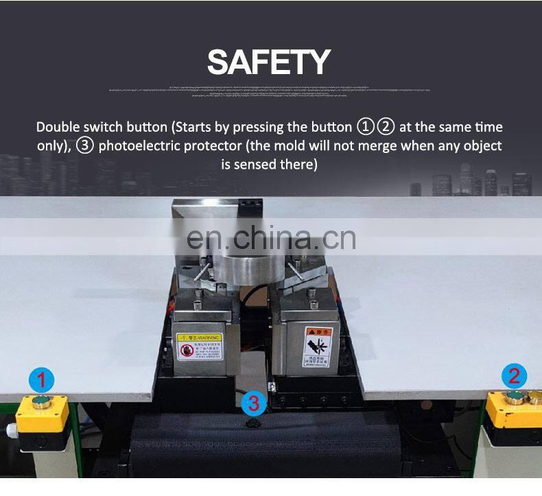 2) This machine can weld 2 gasket corners every time, after welding, it cleans (trims) extra material automatically to make it nice, firm and beautiful surface of welding corner.