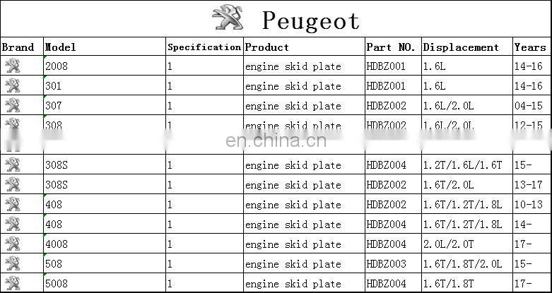 Lower Engine Undercover Splash Shield Cover Guard for Peugeot 307 308 308S 408 1.6T/1.2T/1.8L