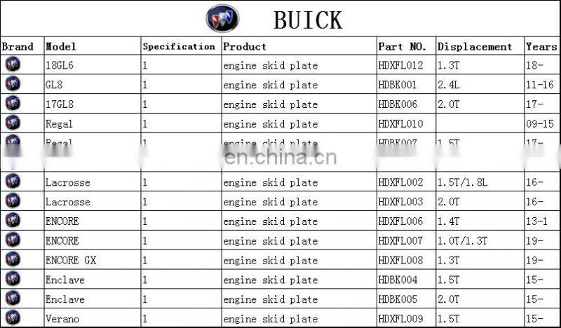 Home > Products > skid plate > Automotive Pats Car Factory Under Engine Skid Plate for Buick 2015- Verano 1.5T