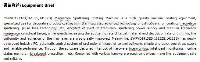 Vacuum Coating Equipment Magnetron Sputtering Coating Machine ZY-PVD1413ZS