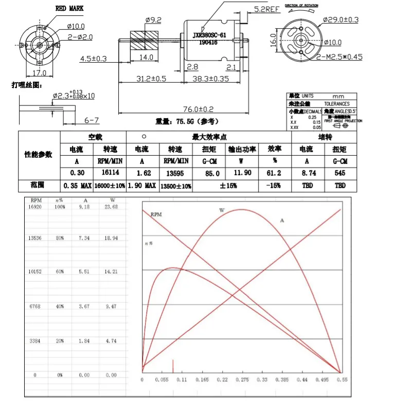 | Continuous Current(A) | 0.3A | Speed(RPM) | 16114 RPM | |