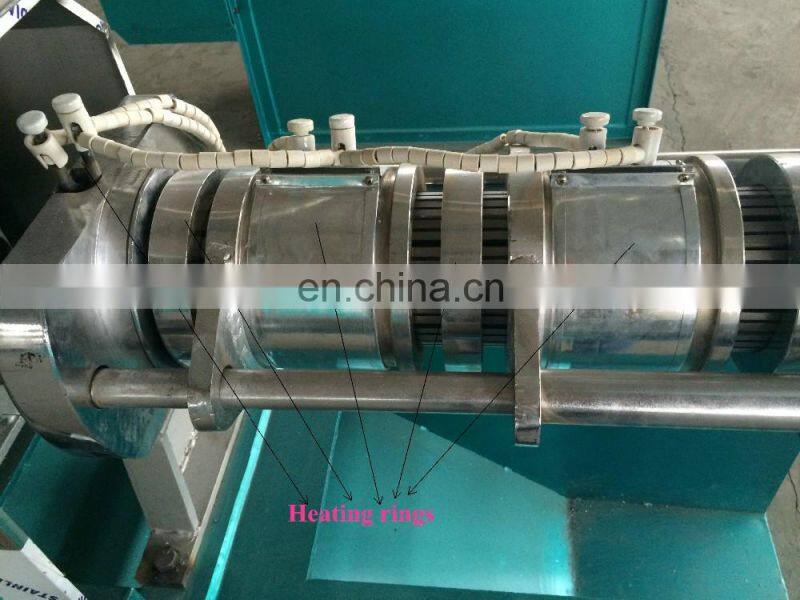 3). This mini oil expeller machine can both hot and cold press. The press chamber mainly consists of Bar Exhaust type oil leakage parts outside the chamber, meaning this design is capable for cold/raw press, can directly press the raw materials, no need to heat/fry, but the cold press operation should press the cake for the second time to squeeze more oil. In contrast, the hot press operation can squeeze the oil completely for only once time if you use this series machines, no need to compress the cake for the second time, very convenient and more oil yield;