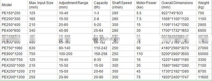 2 PE series jaw crusher is widely used in mining, smelting, building material, highway, railway, water conservancy and chemical industry, for the medium-grained broken of variety of ores and bulk materials. PE series jaw crusher can break the bulk material into small uniformed particles, it is the corollary equipment of sand/stone making plant and ore beneficiation plant. Also it can produce road cornerstone stones and construction stone aggregater.