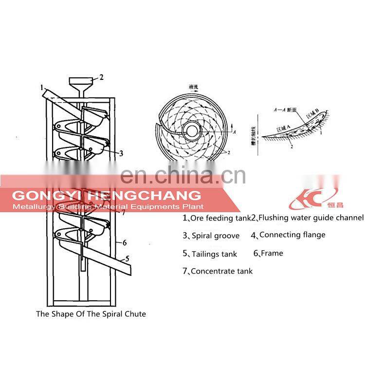 Spiral chute uses gravity to separate particles of different densities. It is used globally in the mineral processing industry, consists of an open trough that twists downward in helix configuration about a central axis.