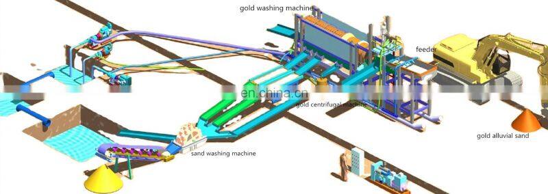 4.Concentrating: use centrifugal concentrator to recovery -6mm gold partilcle ,6-12mm would go to sluice box .