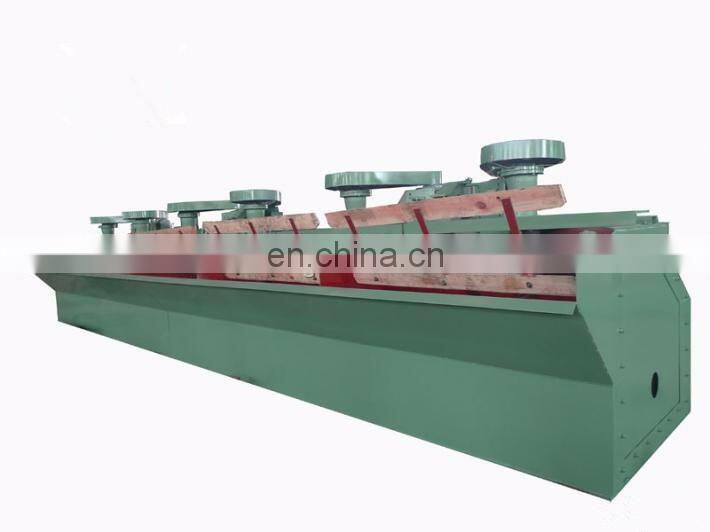 SF flotation machine has the advanced forward-type tank structure, double-blade wheel, with a diversion pipe and false bottom device. The slurry in the slot flows in an up and down double fixed direction cycle, which is good for the coarse-grained mineral flotation. It can absorb fresh air and slurry, no need foam pump, suitable for separation of non-ferrous metals, ferrous metals, precious metals, non-metallic mineral and chemical raw materials, recovery of useful minerals.