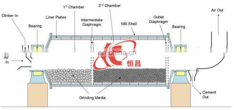 The ball mill is a horizontal rotating device transmitted by the outer gear. The materials are transferred to the grinding chamber through the quill shaft uniformly. There are ladder liner and ripple liner and differentspecifications of steel balls in the chamber.