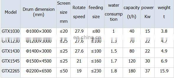 The machine is working rotary through the gear in the middle of the outside drum. In the washing part, it’s a closed space ,there are some plate in this part. When the material is fed from the feeder to the washing part, during the force of watering and striking, the clay and ore will be separated, the fine particle will be flowed to the sieving part.