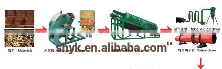 Materials→Sawdust Machine→Rotary Screen→Rotary Dryer→Ration Silo→ Charcoal Briquette Machine→Energy-saving Carbonization Furnace→Briquette Show