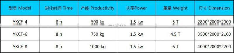 3.Carbonizing out the maximum yield of charcoal in the shortest time, each furnace carbonization time only need 4-6 hours;