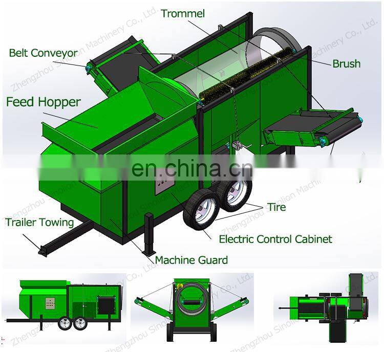 Factory Price High Performance Mobile Trommel Compost Sifter Mobile Compost Trommel Screen