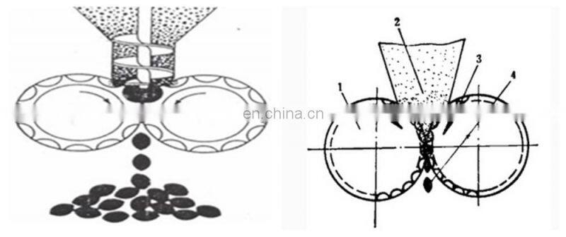When use dry powder mineral fuel briquette machine, the material will be pre-pressured before enter press roller.