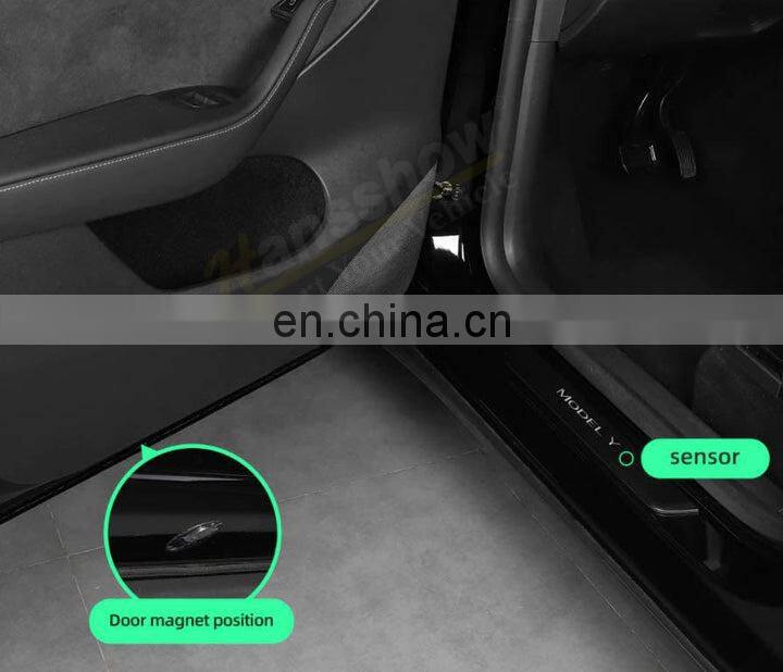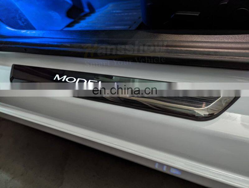 Home > Products > For Tesla Series > Wholesale Illuminated Door Sills Welcome Scuff Plates For Tesla Model 3 Model Y Door Sill Lights 2017-2022