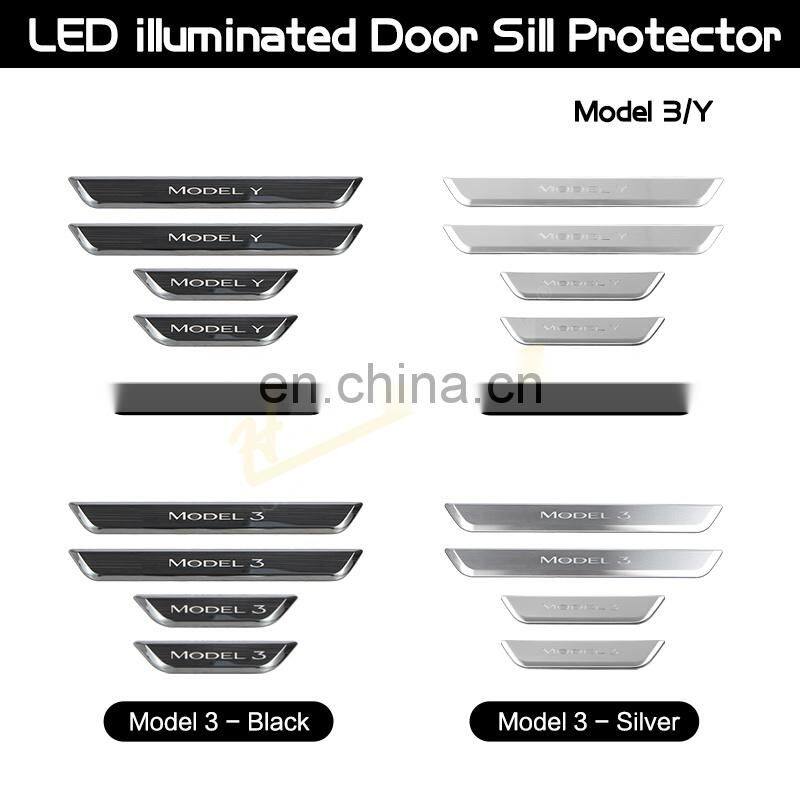 Wholesale Illuminated Door Sills Welcome Scuff Plates For Tesla Model 3 Model Y Door Sill Lights 2017-2022