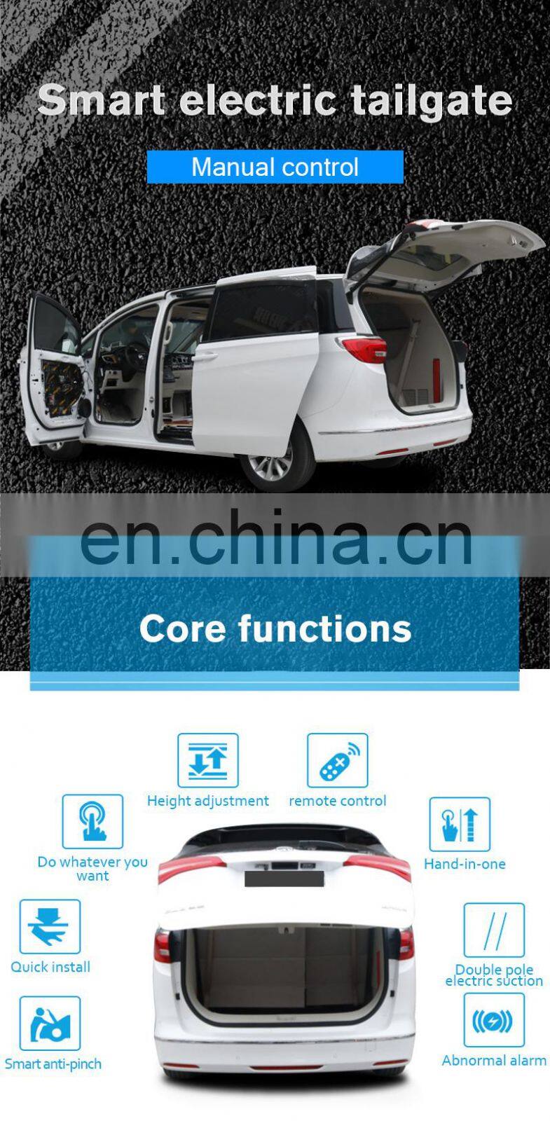 Function | Adjust Intelligently/Manual-automatic/Intelligent anti Pinch system/Tail door follow-up function |