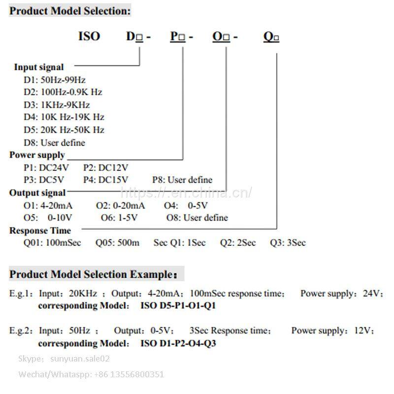E. G. 1: Input: 20KHz; Output: 4-20mA; 100mSec response time; Power supply: 24v