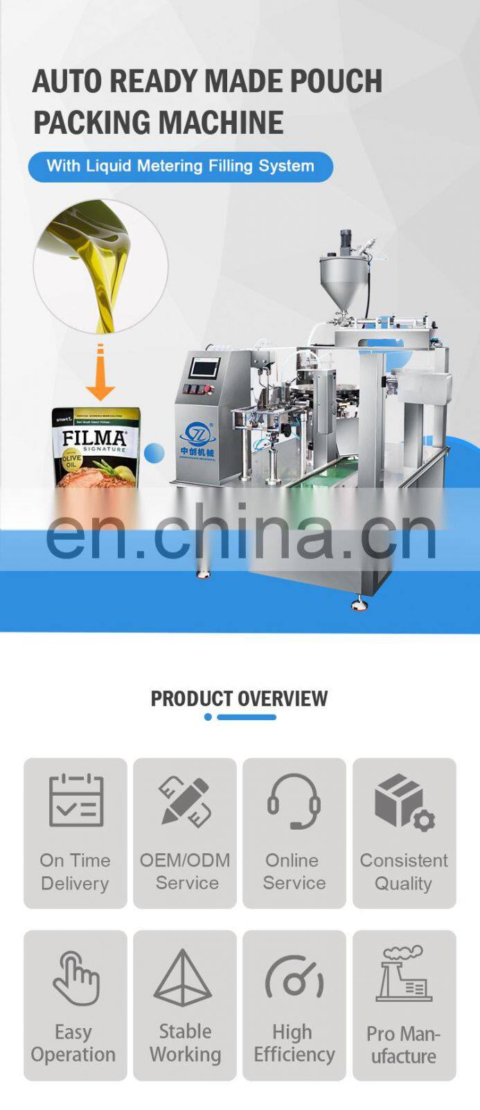 Full Automatic Sauce Jam Butter Honey Edible Vegetable Olive Oil Filling Stand Up Pouch Liquid Doypack Packing Machine