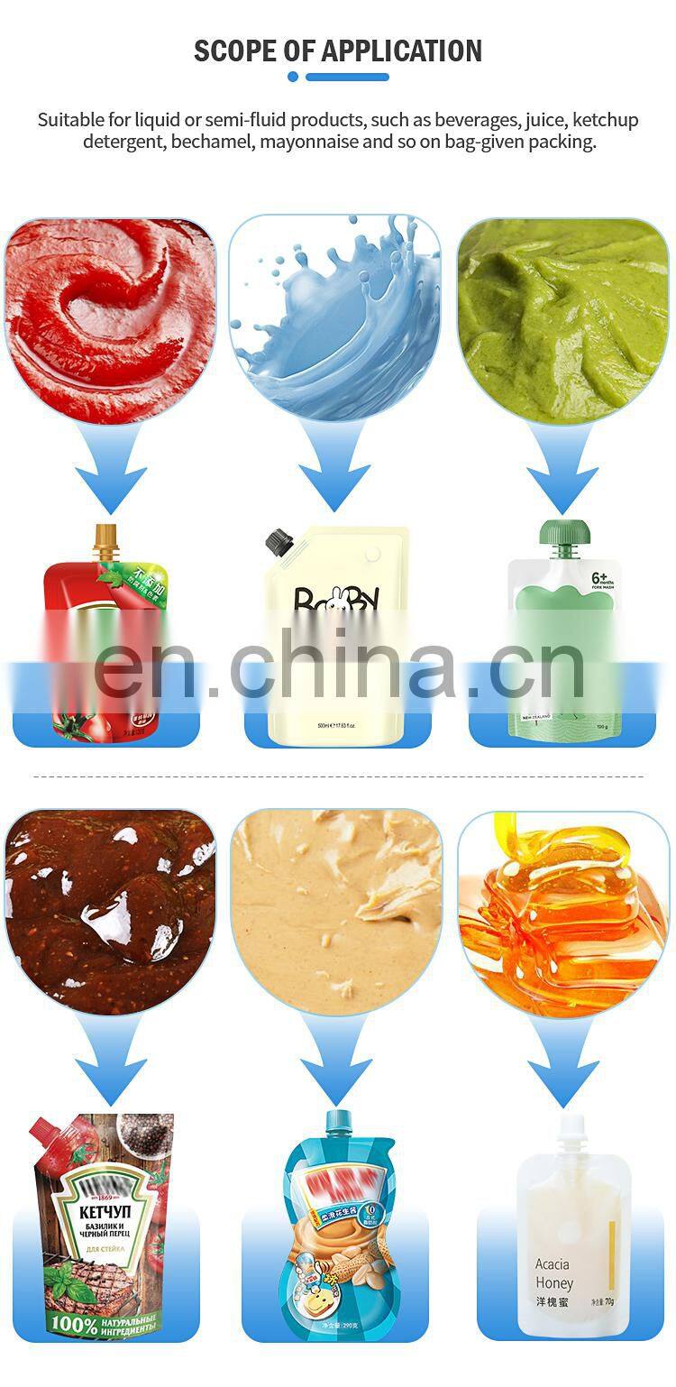 Baby Puree Food Yogurt Condensed Milk Packing Retort Stand Up Spout Squeeze Pouch Filling Capping Machine