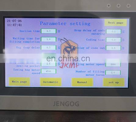4.Automatic checking: no pouch or pouch open error, no fill, no seal. the bag can be used again, avoid wasting packing materials and raw materials.