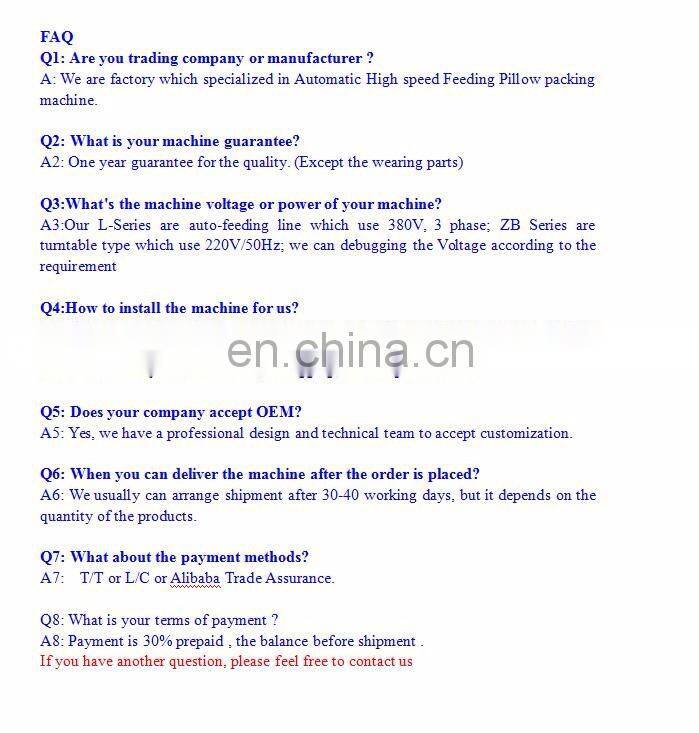 Lifting Type Fullautomatic Customized High Quality Packing Machine Line Flow Wrapping Machine