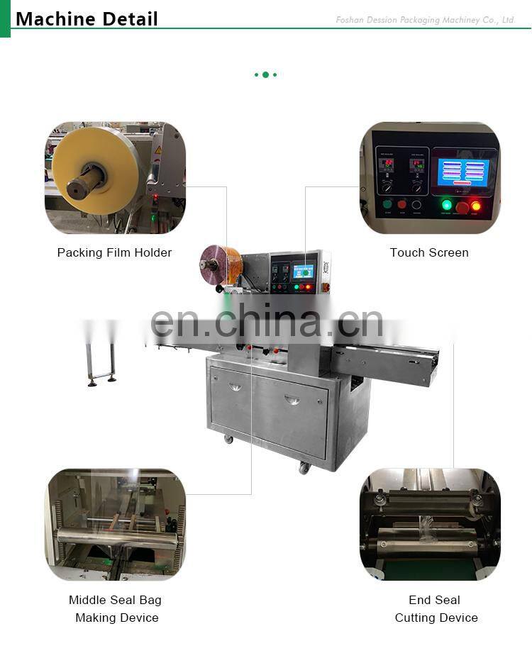 Dession Horizontal Pillow plastic fittings packaging machine widely applied for various kinds of regular objects like food, medicine, daily appliances,cosmetic,metals, industrial parts, boxes, trays, toys and etc.