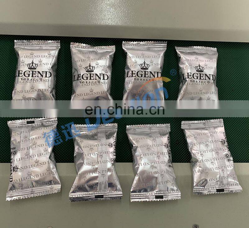 Automatic shisha packing machine, speed reach to 80-120 bags/min, also can connect with box packing machine and cellophane wrapping machine to make a complete production line.