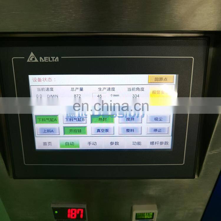 Just set the parameters on the screen, and then you can start the machine. Put the product in the hopper, the machine will automatically pull the film, the bag is formed, sealed, and finally the bag is cut.