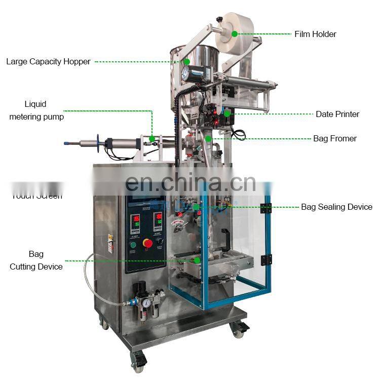 1. All the works of bag making, measuring, filling, sealing, cutting and counting can be done automatically, at the same time, it can also according to the demand of customers printing batch number and other functions.