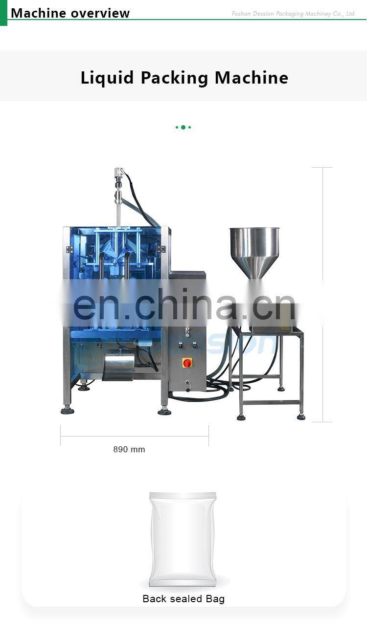 Dession liquid packing machine is suitable for the packaging of various liquid and sauces, such as soup,edible oil,liquid medicine,cream,seasoning sauce,honey,shampoo and shower gel etc.