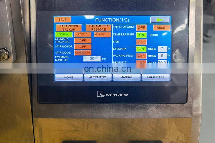 4.Packaging speed and length of bags can be set to some extent without further adjustment and parts changing. Packaging speed and length of bags can be set to some extent without further adjustment and parts changing.