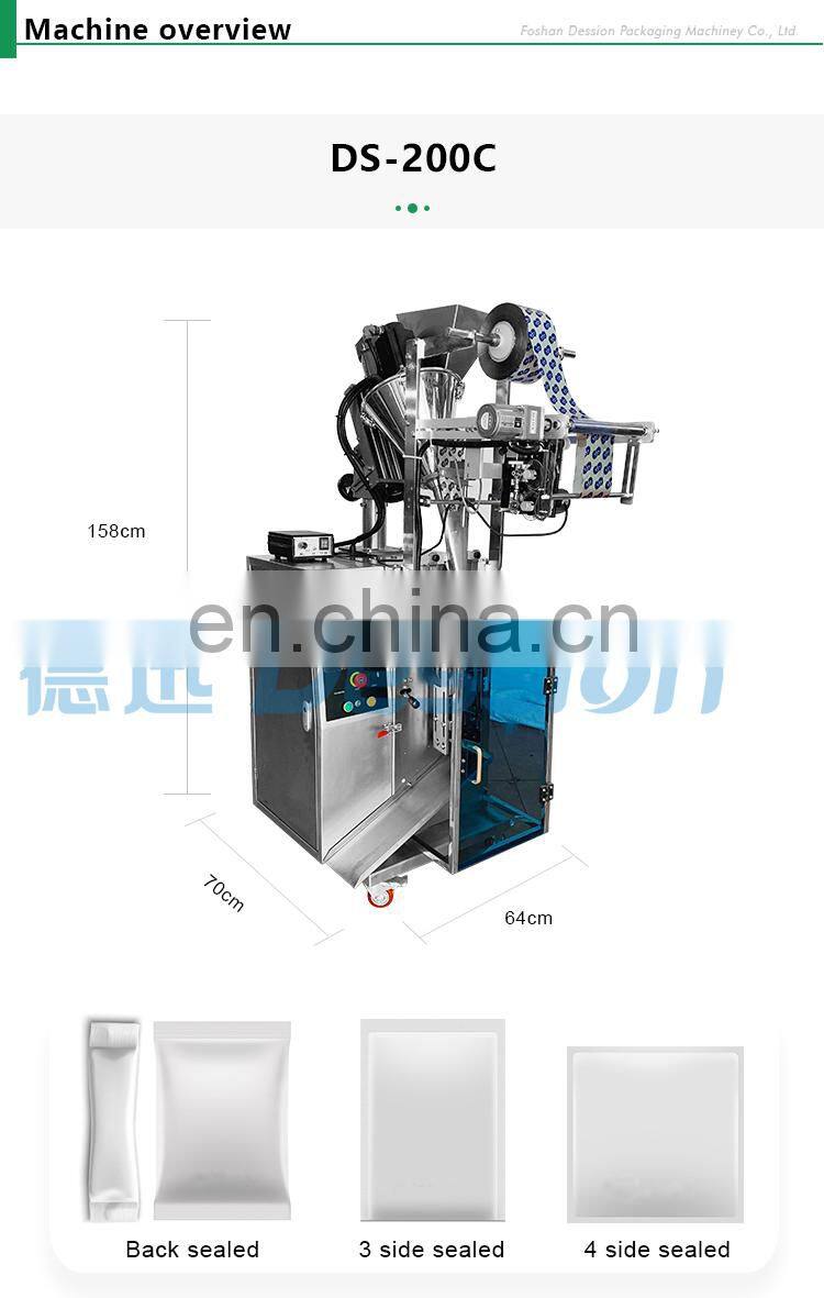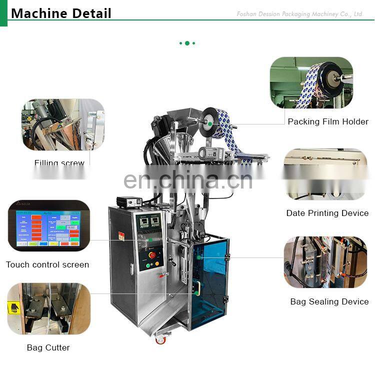 Dession granule packing machine is suitable for ultra-fine powdery materials. Such as: milk powder, coffee powder, seasoning powder, milk tea powder, protein powder, bean powder etc.