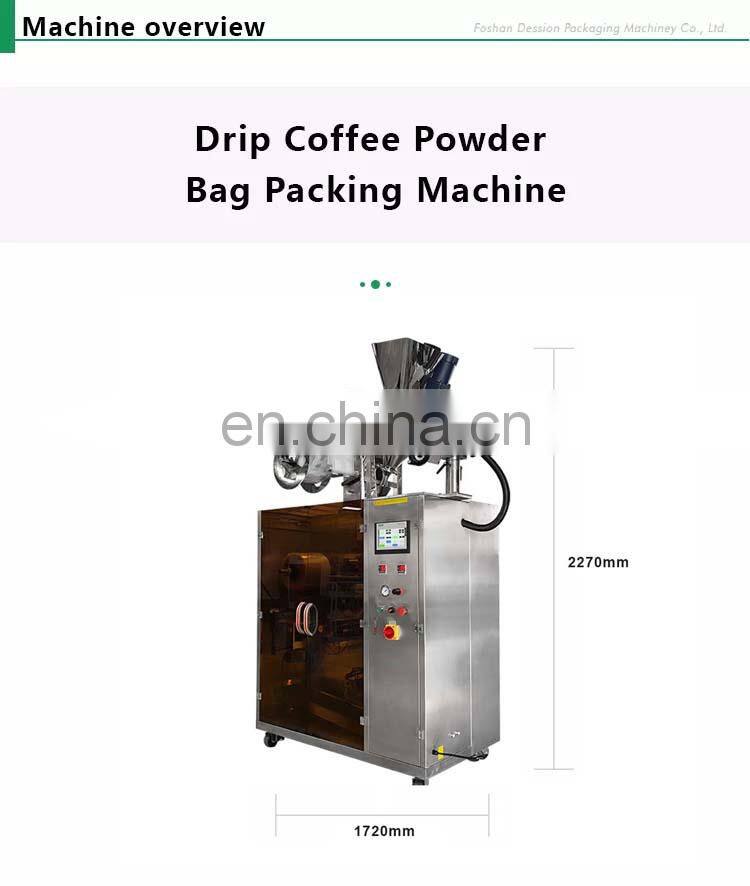 Dession drip coffee powder bag packing machine is suitable for packaging all kinds of powders and powder materials, such as coffee powder, soybean powder, milk powder, medicinal powder and other products.