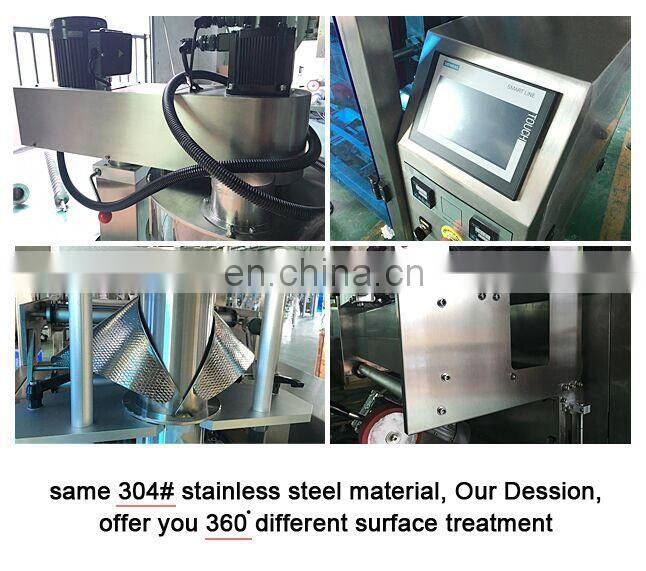 Safety: the packing machine has multiple level protection:emergency stop button,safety door lock,alarms.all of the touching parts are made of SUS304,which meet food safety grade demand.