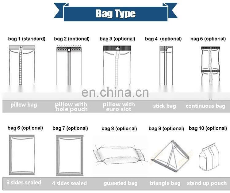 According to customer needs,can offer different bag styles.such as pillow bag,back sealed bag with hole,gusseted bag and gusseted bag with hole hanging.