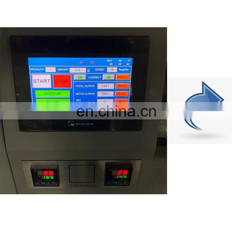 4. Packaging speed and length of bags can be set to some extent without further adjustment and parts changing. Packaging speed and length of bags can be set to some extent without further adjustment and parts changing.