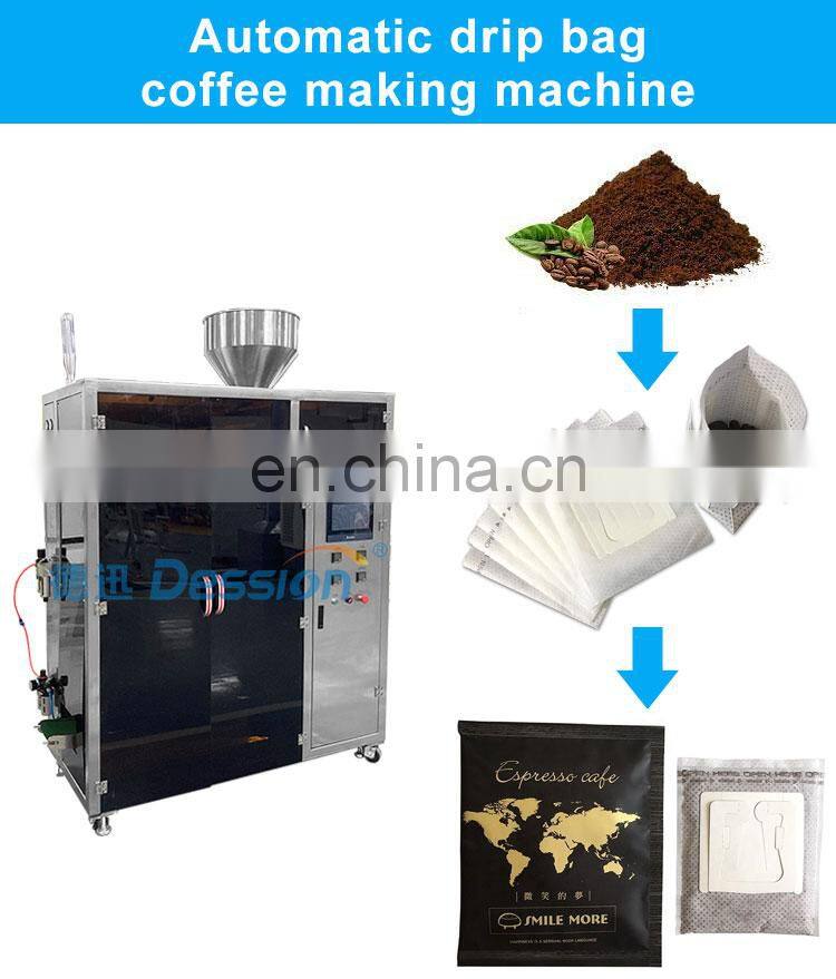 Dession drip coffee powder bag packing machine is suitable for packaging all kinds of powders and powder materials, such as coffee powder, soybean powder, milk powder, medicinal powder and other products.