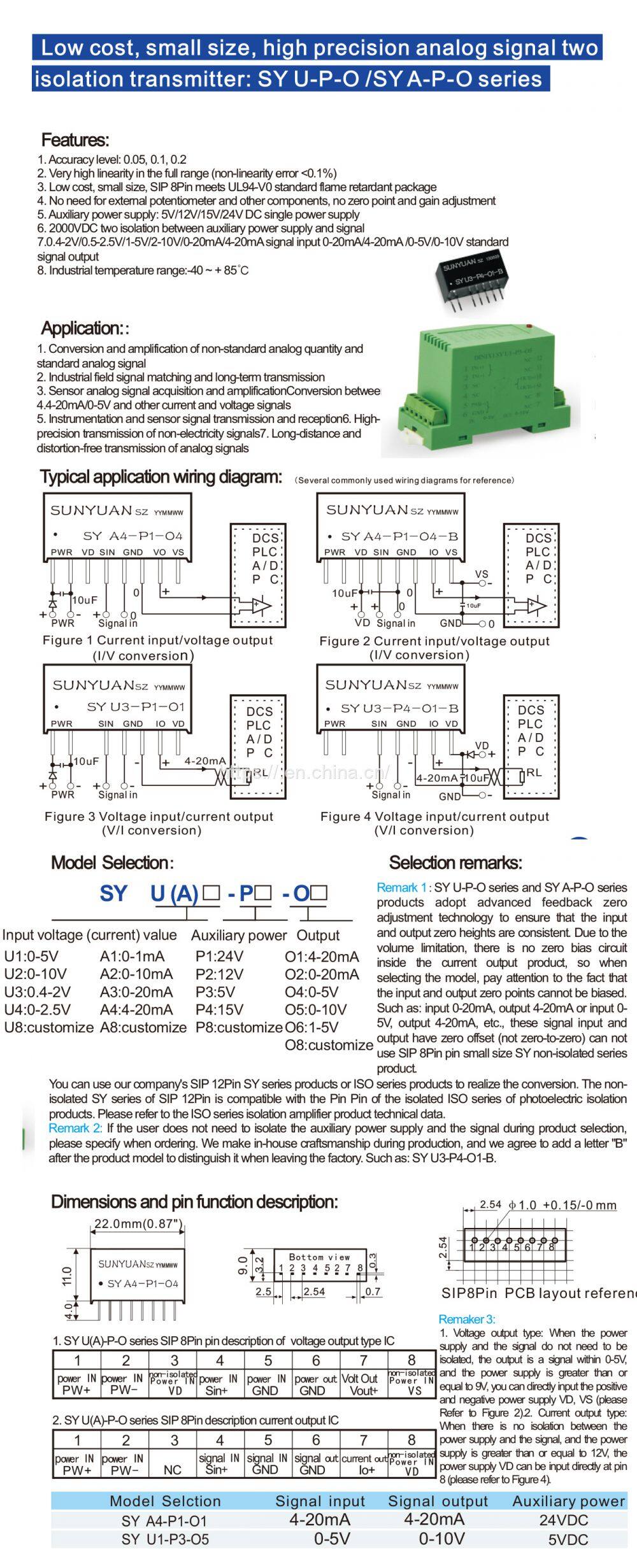 Commonly used two-wire passive isolation amplifier, isolation transmitter IC, Sunyuan product technical information download: