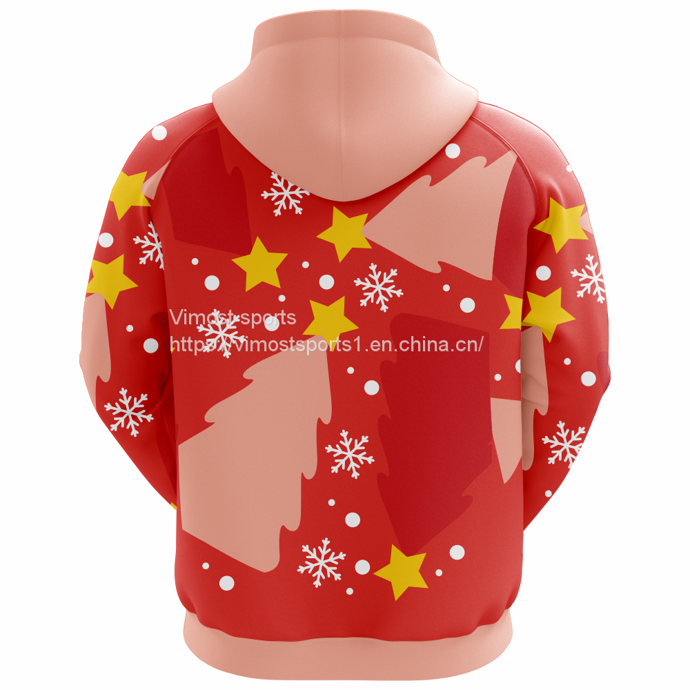 Red Custom Sublimation Hoodie of Christmas Tree Pattern