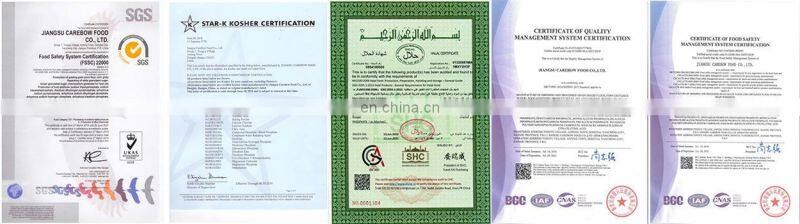 certificate, Alllergen statement, Microbiological data statement, non-irradiation statement, Melamine statement, Vegetarian/vegan statement, All of our products meet the requirements of current chinese legislation (e.g. GB2760 Hygienic standards for uses of food addivites); products can meet FCC and Europe standard, or producing according to customer's requirements.