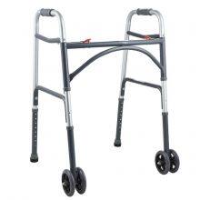 Walking Stick Adult Double Button Aluminum Walker Frame with 5" Wheel Brakes Lightweight Dual Rise one-button folding walking frame.