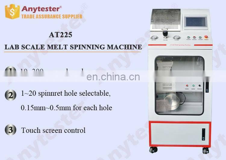 AT225 Laboratory Melt Spinning Machine is a main key equipment in synthetic fiber production. This machine uses high temperature copper ring block to heat and melt the polymer sample, and extrudes the sample to be liquid trickle from a spinneret under the effect of inert gas (N2) pressure to produce the nascent fiber.
