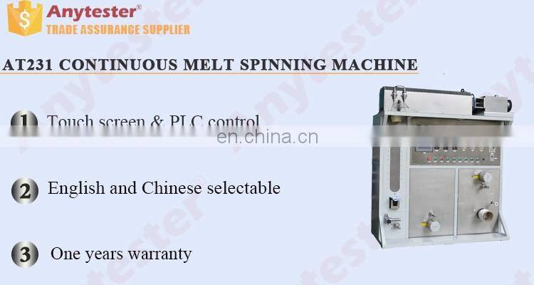 AT231 Continuous Melt Spinning Machine is a main key equipment in synthetic fibre production. This machine uses high temperature ceramic to heat and melt the polymer sample, and extrude the sample to be liquid trickle from a spinneret under the effect of inert gas pressure, then nascent fibers form under the effect of air cooling. It is specially designed for small batch production test to simulate the field production.