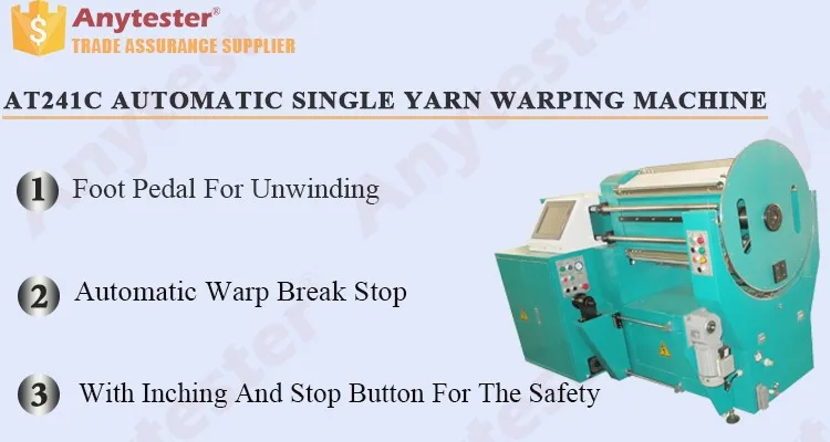 AT241C Automatic Single Yarn Warping Machine is used for automatic warping of production sample, weaving sample and small batch fabrics for lab. As the textile develops in the direction of small quantity, diverse kind and prompt delivery, so our company has developed AT241C Small Sample Warping Machine on the increasing requirements on product samples. It is widely used in the sampling in the industries including wool spinning, cotton spinning, colored woven and natural silk etc.